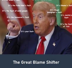 If there is failure, it is always the fault of someone other than Donald J Trump.
